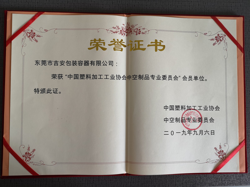 東莞市吉安包裝容器有限公司榮譽(yù)證書