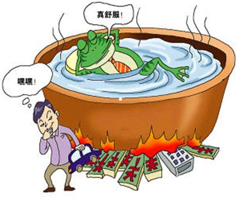 如果把一只青蛙扔到開水中,青蛙會馬上跳出來。但如果把一只青蛙放入涼水中逐漸加熱,青蛙就會在不知不覺中失去跳躍的能力,直到死去。
