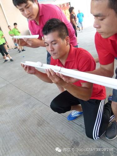 第三項(xiàng)比賽是最有挑戰(zhàn)性的項(xiàng)目——運(yùn)球。規(guī)則是:1、每組人員5人為1小組,分成三小組,ABCD組同時(shí)進(jìn)行,分三回合同時(shí)進(jìn)行比賽。四組同時(shí)進(jìn)行,每個(gè)組員手上有一條PV管。2、由第一個(gè)開始運(yùn),在5分鐘內(nèi)成功的將球掉入指定的桶里面就算結(jié)束,根據(jù)四組最快為第一名,以此類推,要求球不要掉下來(lái),也不可以倒退,如果掉下來(lái)或者是倒退的話就要重頭開始,把PV管反過(guò)來(lái)兩個(gè)人為一根管來(lái)運(yùn),規(guī)則與第一條一致。3、第一名5分,第二名加3分,第三名加2分,第四名加1分;如果5分鐘內(nèi)沒(méi)有完成的小組,均不加分。