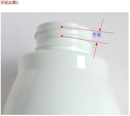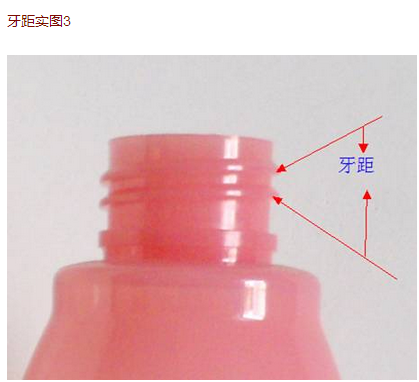 接下來我們還要來認(rèn)識(shí)一下很少用,但也十分重要的部份,就是牙距與牙型。 在這里先簡(jiǎn)單的說解一下,第二篇“瓶口與瓶蓋的關(guān)系”我們會(huì)詳細(xì)解說一旦牙型、牙距不正確了,那么就配不上蓋子或是配上了也會(huì)出現(xiàn)滑牙(脫牙)或是漏液等不良情況。我們這里先認(rèn)識(shí)下牙距與測(cè)量方法,如圖