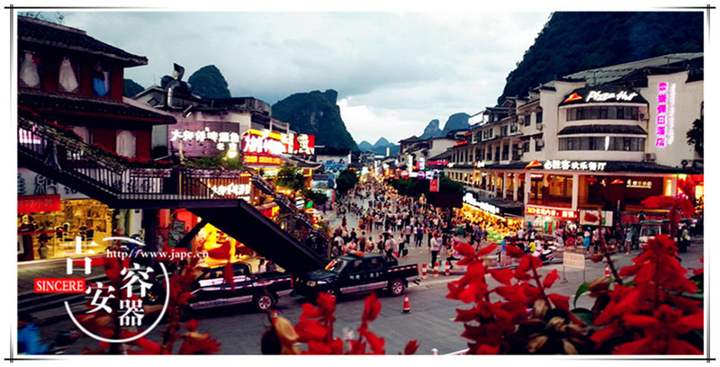 第二批的同事則由于天氣原因河水漲潮沒有觀賞到壯觀的劉三姐演出,改為自由活動(dòng)游覽陽朔具三百年歷史、名登“世界旅游大典”充滿外國醉人情調(diào)之【陽朔西街】。在 “不逛洋人街,等于沒到陽朔來”體驗(yàn)一下西街酒吧的小資情調(diào):“丁丁” “原始人”的熱情,“陽朔第一燒”的烤雞,“四?!焙汀盁嵛钑?huì)所”的狂野音樂,“沒有飯店” 的溫馨氛圍。新起的酒吧也很不錯(cuò)“馬可波羅”“陌陌”“菲林”感受陽朔另一面的激情。