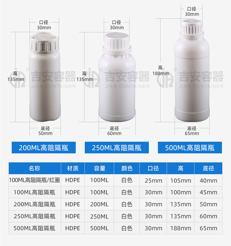 東莞市吉安包裝容器有限公司創(chuàng)立于2000年8月1日,是中國知名品牌企業(yè)。已通過ISO 9001質(zhì)量管理體系資質(zhì)認(rèn)證,加入了中國中空協(xié)會,并獲得《中國知名品牌》,《國家標(biāo)準(zhǔn)合格產(chǎn)品》,《全國重合同守信用AAA級企業(yè)》,《質(zhì)量.服務(wù).誠信AAA企業(yè)》等榮譽(yù)稱號。根據(jù)材質(zhì)的不同,我們的產(chǎn)品分為塑料容器、鐵質(zhì)容器、鋁材容器、玻璃容器、紙質(zhì)容器等五大類。按產(chǎn)品的名稱分為塑料桶、塑料瓶、包裝桶、涂料桶、機(jī)油桶、油脂桶、化工罐、膠水瓶、鐵桶、鐵罐、鋁瓶、鋁罐、阻隔瓶、高阻隔瓶等,容量從3ML至1000L多種規(guī)格,多種款式。適合包裝的產(chǎn)品包括:化學(xué)試劑、化工原料、化工助劑、飼料添加劑、油墨、油漆、樹脂農(nóng)藥、日用化學(xué)品、聚氨脂、膠粘劑,廣泛應(yīng)用于化工、建筑、食品、醫(yī)療、生物等各領(lǐng)域。