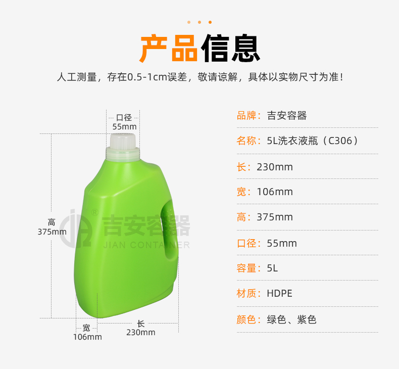 | 品名:綠色洗衣液瓶(C306) | |