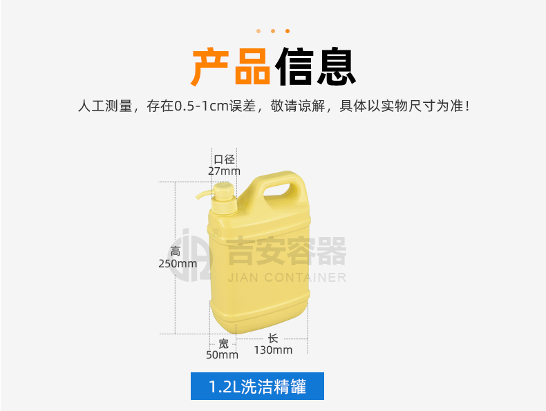 東莞市吉安包裝容器有限公司創(chuàng)立于2000年8月1日,是中國(guó)知名品牌企業(yè)。已通過(guò)ISO 9001質(zhì)量管理體系資質(zhì)認(rèn)證,加入了中國(guó)中空協(xié)會(huì),并獲得《中國(guó)知名品牌》,《國(guó)家標(biāo)準(zhǔn)合格產(chǎn)品》,《全國(guó)重合同守信用AAA級(jí)企業(yè)》,《質(zhì)量.服務(wù).誠(chéng)信AAA企業(yè)》等榮譽(yù)稱(chēng)號(hào)。根據(jù)材質(zhì)的不同,我們的產(chǎn)品分為塑料容器、鐵質(zhì)容器、鋁材容器、玻璃容器、紙質(zhì)容器等五大類(lèi)。按產(chǎn)品的名稱(chēng)分為塑料桶、塑料瓶、包裝桶、涂料桶、機(jī)油桶、油脂桶、化工罐、膠水瓶、鐵桶、鐵罐、鋁瓶、鋁罐、阻隔瓶、高阻隔瓶等,容量從3ML至1000L多種規(guī)格,多種款式。適合包裝的產(chǎn)品包括:化學(xué)試劑、化工原料、化工助劑、飼料添加劑、油墨、油漆、樹(shù)脂農(nóng)藥、日用化學(xué)品、聚氨脂、膠粘劑,廣泛應(yīng)用于化工、建筑、食品、醫(yī)療、生物等各領(lǐng)域。