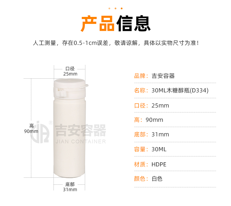 | 品名:30ml木糖醇瓶(D334) | |