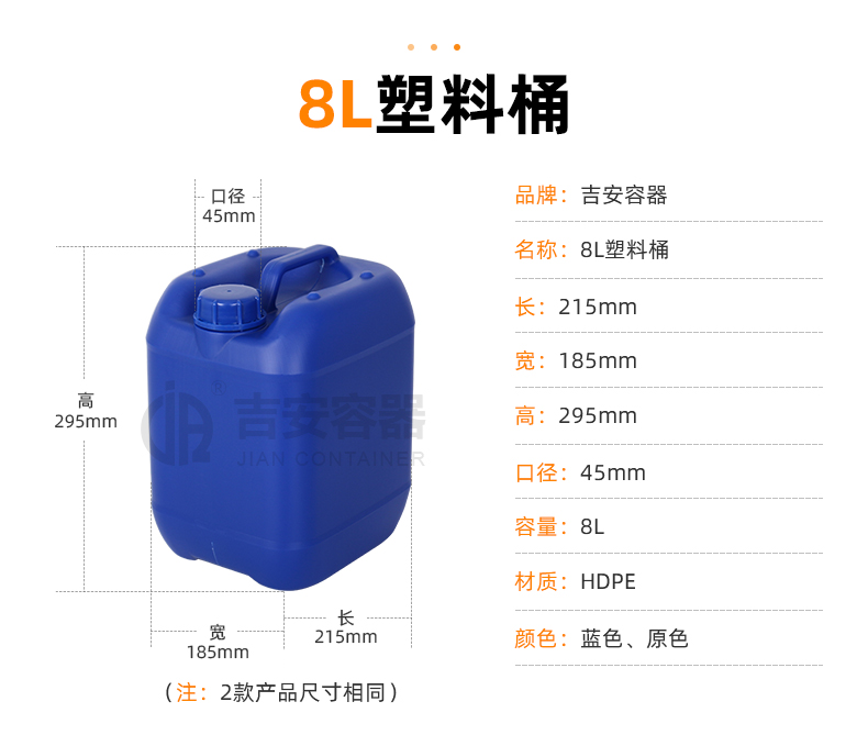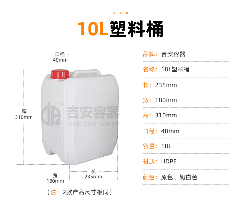 小口塑料桶:采用全新聚乙烯原料吹塑工藝制作而成,具有耐腐蝕,耐酸堿特性,小口設(shè)計(jì)密封性能強(qiáng),廣泛應(yīng)用于化工、清潔、食品、添加劑、汽車(chē)等各行業(yè)液體包裝。