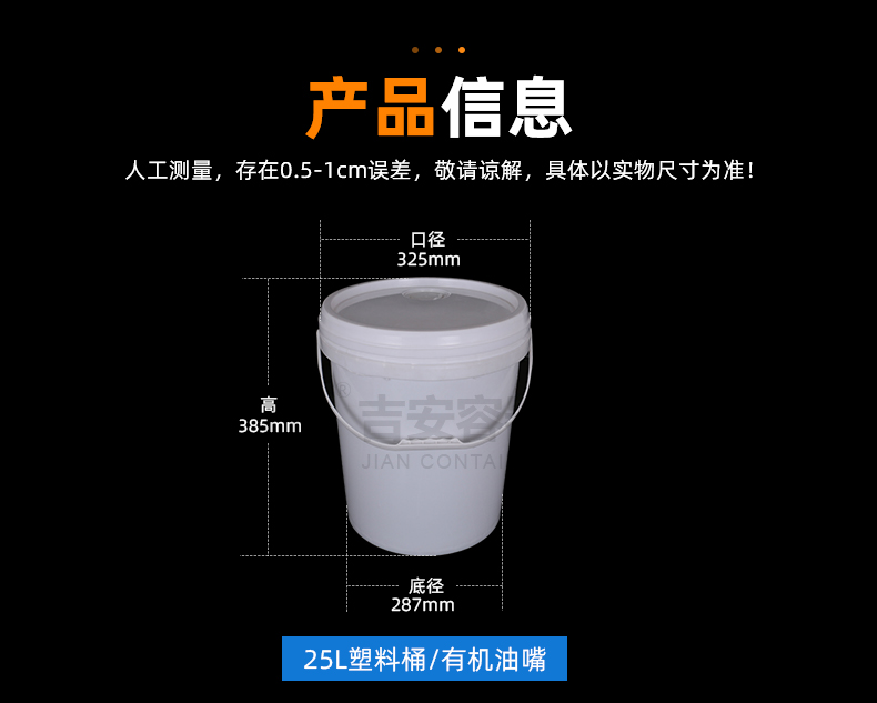 東莞市吉安包裝容器有限公司創(chuàng)立于2000年8月1日,是中國知名品牌企業(yè)。已通過ISO 9001質量管理體系資質認證,加入了中國中空協(xié)會,并獲得《中國知名品牌》,《國家標準合格產品》,《全國重合同守信用AAA級企業(yè)》,《質量.服務.誠信AAA企業(yè)》等榮譽稱號。根據材質的不同,我們的產品分為塑料容器、鐵質容器、鋁材容器、玻璃容器、紙質容器等五大類。按產品的名稱分為塑料桶、塑料瓶、包裝桶、涂料桶、機油桶、油脂桶、化工罐、膠水瓶、鐵桶、鐵罐、鋁瓶、鋁罐、阻隔瓶、高阻隔瓶等,容量從3ML至1000L多種規(guī)格,多種款式。適合包裝的產品包括:化學試劑、化工原料、化工助劑、飼料添加劑、油墨、油漆、樹脂農藥、日用化學品、聚氨脂、膠粘劑,廣泛應用于化工、建筑、食品、醫(yī)療、生物等各領域。