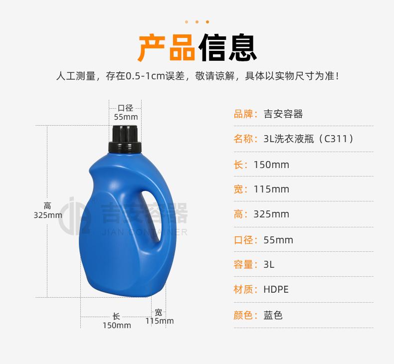 | 容量:3L | 材質(zhì):HDPE |