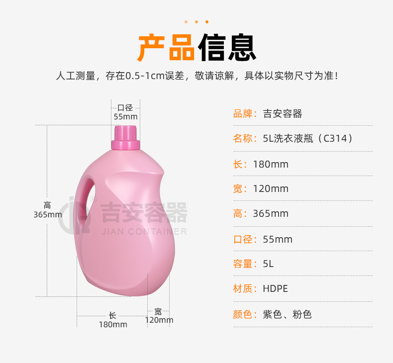 東莞市吉安包裝容器有限公司創(chuàng)立于2000年8月1日,是中國知名品牌企業(yè)。已通過ISO 9001質量管理體系資質認證,加入了中國中空協(xié)會,并獲得《中國知名品牌》,《國家標準合格產品》,《全國重合同守信用AAA級企業(yè)》,《質量.服務.誠信AAA企業(yè)》等榮譽稱號。根據(jù)材質的不同,我們的產品分為塑料容器、鐵質容器、鋁材容器、玻璃容器、紙質容器等五大類。按產品的名稱分為塑料桶、塑料瓶、包裝桶、涂料桶、機油桶、油脂桶、化工罐、膠水瓶、鐵桶、鐵罐、鋁瓶、鋁罐、阻隔瓶、高阻隔瓶等,容量從3ML至1000L多種規(guī)格,多種款式。適合包裝的產品包括:化學試劑、化工原料、化工助劑、飼料添加劑、油墨、油漆、樹脂農藥、日用化學品、聚氨脂、膠粘劑,廣泛應用于化工、建筑、食品、醫(yī)療、生物等各領域。