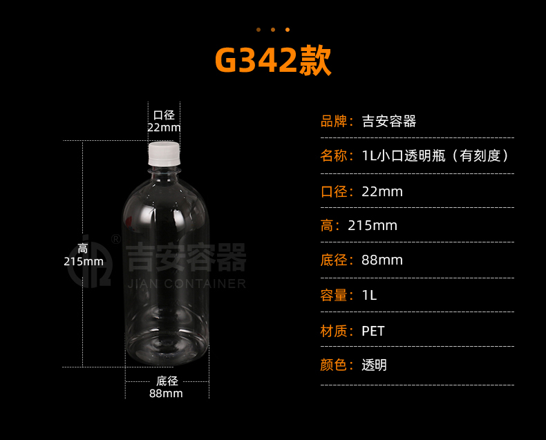 | 品名:1L小口透明圓瓶(G342) | |