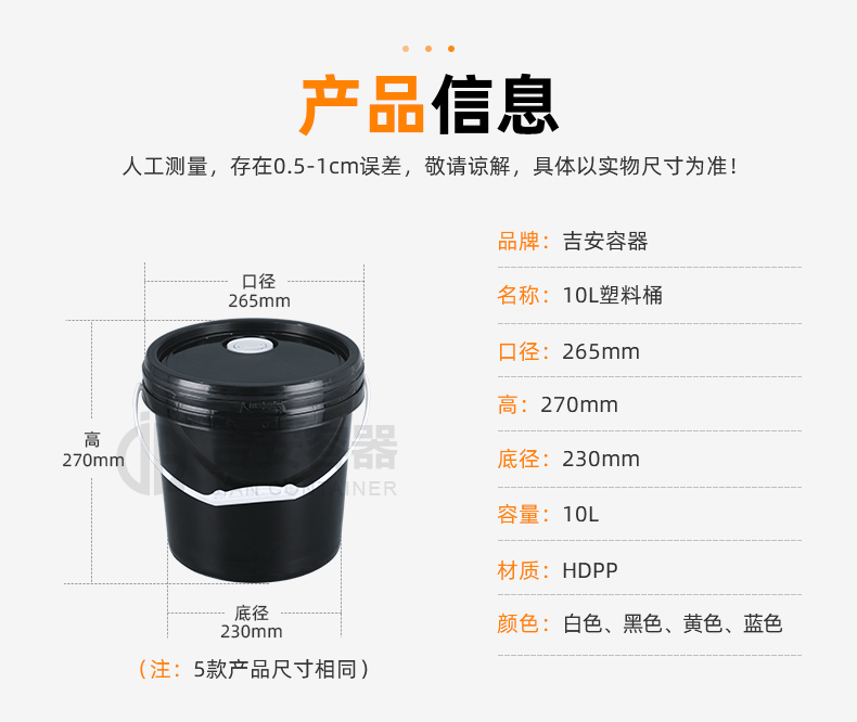 東莞市吉安包裝容器有限公司創(chuàng)立于2000年8月1日,是中國知名品牌企業(yè)。已通過ISO 9001質量管理體系資質認證,加入了中國中空協(xié)會,并獲得《中國知名品牌》,《國家標準合格產品》,《全國重合同守信用AAA級企業(yè)》,《質量.服務.誠信AAA企業(yè)》等榮譽稱號。根據材質的不同,我們的產品分為塑料容器、鐵質容器、鋁材容器、玻璃容器、紙質容器等五大類。按產品的名稱分為塑料桶、塑料瓶、包裝桶、涂料桶、機油桶、油脂桶、化工罐、膠水瓶、鐵桶、鐵罐、鋁瓶、鋁罐、阻隔瓶、高阻隔瓶等,容量從3ML至1000L多種規(guī)格,多種款式。適合包裝的產品包括:化學試劑、化工原料、化工助劑、飼料添加劑、油墨、油漆、樹脂農藥、日用化學品、聚氨脂、膠粘劑,廣泛應用于化工、建筑、食品、醫(yī)療、生物等各領域。