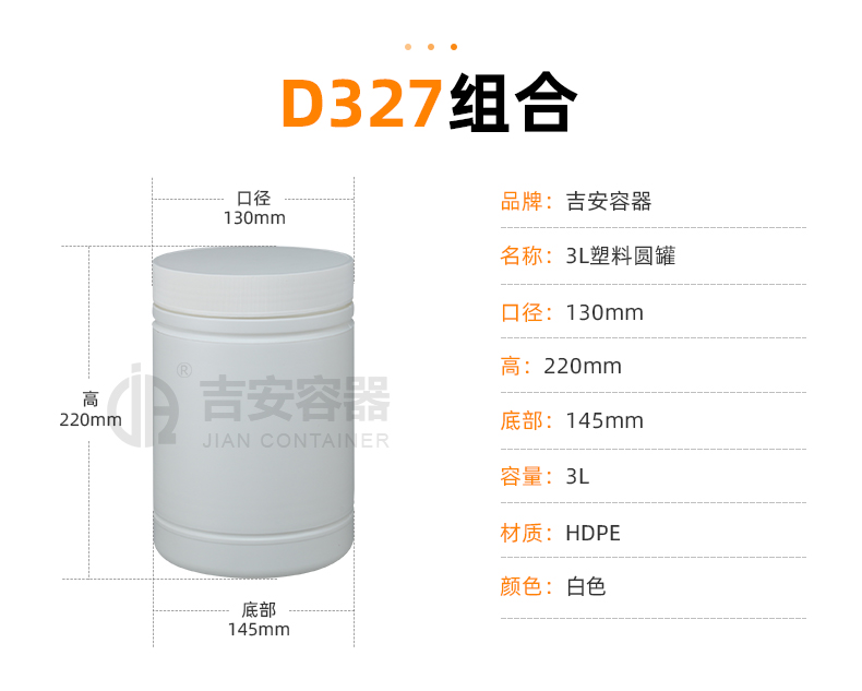 東莞市吉安包裝容器有限公司創(chuàng)立于2000年8月1日,是廣東省知名品牌企業(yè)。已通過ISO 9001質(zhì)量管理體系資質(zhì)認證,加入了中國中空協(xié)會,并獲得《廣東省知名品牌》,《國家標準合格產(chǎn)品》,《全國重合同守信用AAA級企業(yè)》,《質(zhì)量.服務(wù).誠信AAA企業(yè)》等榮譽稱號。根據(jù)材質(zhì)的不同,我們的產(chǎn)品分為塑料容器、鐵質(zhì)容器、鋁材容器、玻璃容器、紙質(zhì)容器等五大類。按產(chǎn)品的名稱分為塑料桶、塑料瓶、包裝桶、涂料桶、機油桶、油脂桶、化工罐、膠水瓶、鐵桶、鐵罐、鋁瓶、鋁罐、阻隔瓶、高阻隔瓶等,容量從3ML至1000L多種規(guī)格,多種款式。適合包裝的產(chǎn)品包括:化學(xué)試劑、化工原料、化工助劑、飼料添加劑、油墨、油漆、樹脂農(nóng)藥、日用化學(xué)品、聚氨脂、膠粘劑,廣泛應(yīng)用于化工、建筑、食品、醫(yī)療、生物等各領(lǐng)域。