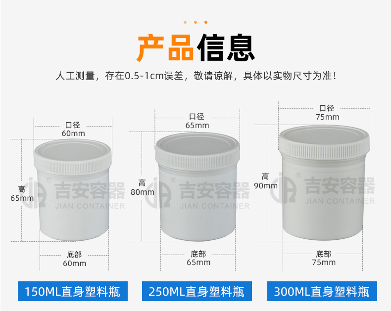 東莞市吉安包裝容器有限公司創(chuàng)立于2000年8月1日,是中國知名品牌企業(yè)。已通過ISO 9001質(zhì)量管理體系資質(zhì)認(rèn)證,加入了中國中空協(xié)會(huì),并獲得《中國知名品牌》,《國家標(biāo)準(zhǔn)合格產(chǎn)品》,《全國重合同守信用AAA級(jí)企業(yè)》,《質(zhì)量.服務(wù).誠信AAA企業(yè)》等榮譽(yù)稱號(hào)。根據(jù)材質(zhì)的不同,我們的產(chǎn)品分為塑料容器、鐵質(zhì)容器、鋁材容器、玻璃容器、紙質(zhì)容器等五大類。按產(chǎn)品的名稱分為塑料桶、塑料瓶、包裝桶、涂料桶、機(jī)油桶、油脂桶、化工罐、膠水瓶、鐵桶、鐵罐、鋁瓶、鋁罐、阻隔瓶、高阻隔瓶等,容量從3ML至1000L多種規(guī)格,多種款式。適合包裝的產(chǎn)品包括:化學(xué)試劑、化工原料、化工助劑、飼料添加劑、油墨、油漆、樹脂農(nóng)藥、日用化學(xué)品、聚氨脂、膠粘劑,廣泛應(yīng)用于化工、建筑、食品、醫(yī)療、生物等各領(lǐng)域。