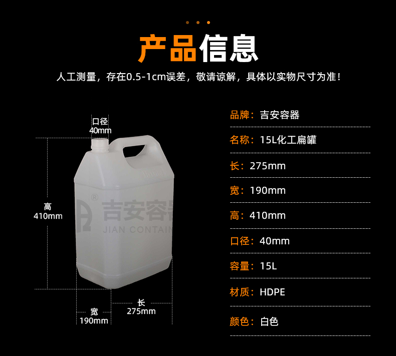 塑料扁罐采用HDPE原材料吹塑而成,具有良好的耐酸堿性及密封性,方形設(shè)計方便堆放,不占用空間,美觀實用。具備不變形,使用方便等特征,可根據(jù)客戶需求做印刷及貼膜,產(chǎn)品適用于尿素、機(jī)油、汽油、清洗劑、化工助劑、食品添加劑等液體包裝。