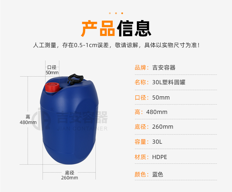小口塑料桶:采用全新聚乙烯原料吹塑工藝制作而成,具有耐腐蝕,耐酸堿特性,小口設(shè)計密封性能強(qiáng),廣泛應(yīng)用于化工、清潔、食品、添加劑、汽車等各行業(yè)液體包裝。