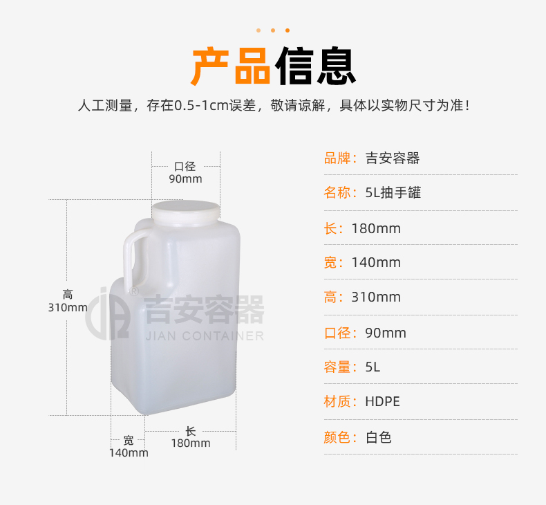 | 容量:5L | 材質:罐蓋-PP,罐身-HDPE |