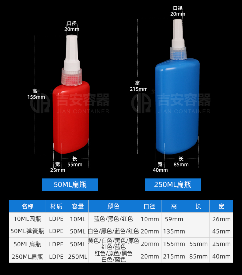 東莞市吉安包裝容器有限公司創(chuàng)立于2000年8月1日,是中國(guó)知名品牌企業(yè)。已通過(guò)ISO 9001質(zhì)量管理體系資質(zhì)認(rèn)證,加入了中國(guó)中空協(xié)會(huì),并獲得《中國(guó)知名品牌》,《國(guó)家標(biāo)準(zhǔn)合格產(chǎn)品》,《全國(guó)重合同守信用AAA級(jí)企業(yè)》,《質(zhì)量.服務(wù).誠(chéng)信AAA企業(yè)》等榮譽(yù)稱(chēng)號(hào)。根據(jù)材質(zhì)的不同,我們的產(chǎn)品分為塑料容器、鐵質(zhì)容器、鋁材容器、玻璃容器、紙質(zhì)容器等五大類(lèi)。按產(chǎn)品的名稱(chēng)分為塑料桶、塑料瓶、包裝桶、涂料桶、機(jī)油桶、油脂桶、化工罐、膠水瓶、鐵桶、鐵罐、鋁瓶、鋁罐、阻隔瓶、高阻隔瓶等,容量從3ML至1000L多種規(guī)格,多種款式。適合包裝的產(chǎn)品包括:化學(xué)試劑、化工原料、化工助劑、飼料添加劑、油墨、油漆、樹(shù)脂農(nóng)藥、日用化學(xué)品、聚氨脂、膠粘劑,廣泛應(yīng)用于化工、建筑、食品、醫(yī)療、生物等各領(lǐng)域。
