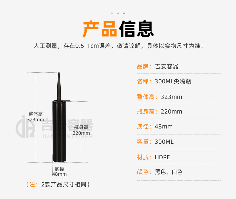 尖嘴瓶適用行業(yè)廣泛,多用于膠水包裝、眼藥水包裝、食品調(diào)料包裝,因其尖嘴特點,具備方便滴膠,操作時流量可控可調(diào),使用方便。
