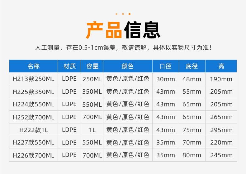 | 材質(zhì):瓶身-LDPE,瓶蓋-HDPP | |