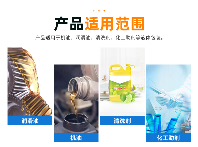 塑料扁罐采用HDPE原材料吹塑而成,具有良好的耐酸堿性及密封性,方形設計方便堆放,不占用空間,美觀實用。具備不變形,使用方便等特征,可根據客戶需求做印刷及貼膜,產品適用于尿素、機油、汽油、清洗劑、化工助劑、食品添加劑等液體包裝。