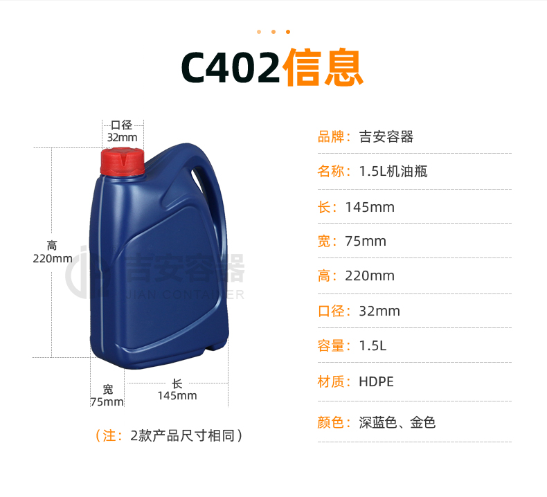 東莞市吉安包裝容器有限公司創(chuàng)立于2000年8月1日,是中國知名品牌企業(yè)。已通過ISO 9001質量管理體系資質認證,加入了中國中空協(xié)會,并獲得《中國知名品牌》,《國家標準合格產品》,《全國重合同守信用AAA級企業(yè)》,《質量.服務.誠信AAA企業(yè)》等榮譽稱號。根據材質的不同,我們的產品分為塑料容器、鐵質容器、鋁材容器、玻璃容器、紙質容器等五大類。按產品的名稱分為塑料桶、塑料瓶、包裝桶、涂料桶、機油桶、油脂桶、化工罐、膠水瓶、鐵桶、鐵罐、鋁瓶、鋁罐、阻隔瓶、高阻隔瓶等,容量從3ML至1000L多種規(guī)格,多種款式。適合包裝的產品包括:化學試劑、化工原料、化工助劑、飼料添加劑、油墨、油漆、樹脂農藥、日用化學品、聚氨脂、膠粘劑,廣泛應用于化工、建筑、食品、醫(yī)療、生物等各領域。